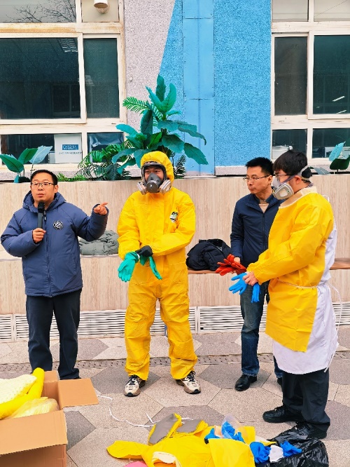 为检验学院师生应对实验室突发安全事故的应急处置能力,强化师生安全意识与自救互救技能,2025年11月26日下午, 91成人 在化学楼东小院组织了实验室危险化学品泄漏应急演练活动,学院安委会成员、各实验室学生安全员、2025级部分新生参加活动。活动特邀教育部实验室安全检查专家组成员、北京科技大学赵雨霄老师担任现场解说与点评专家,由 91成人 院长助理李会峰老师主持。本次演练活动也得到了学校实验室安全与设备管理处的大力支持,实设处处长左锐、副处长翟宇莅临现场观摩指导。